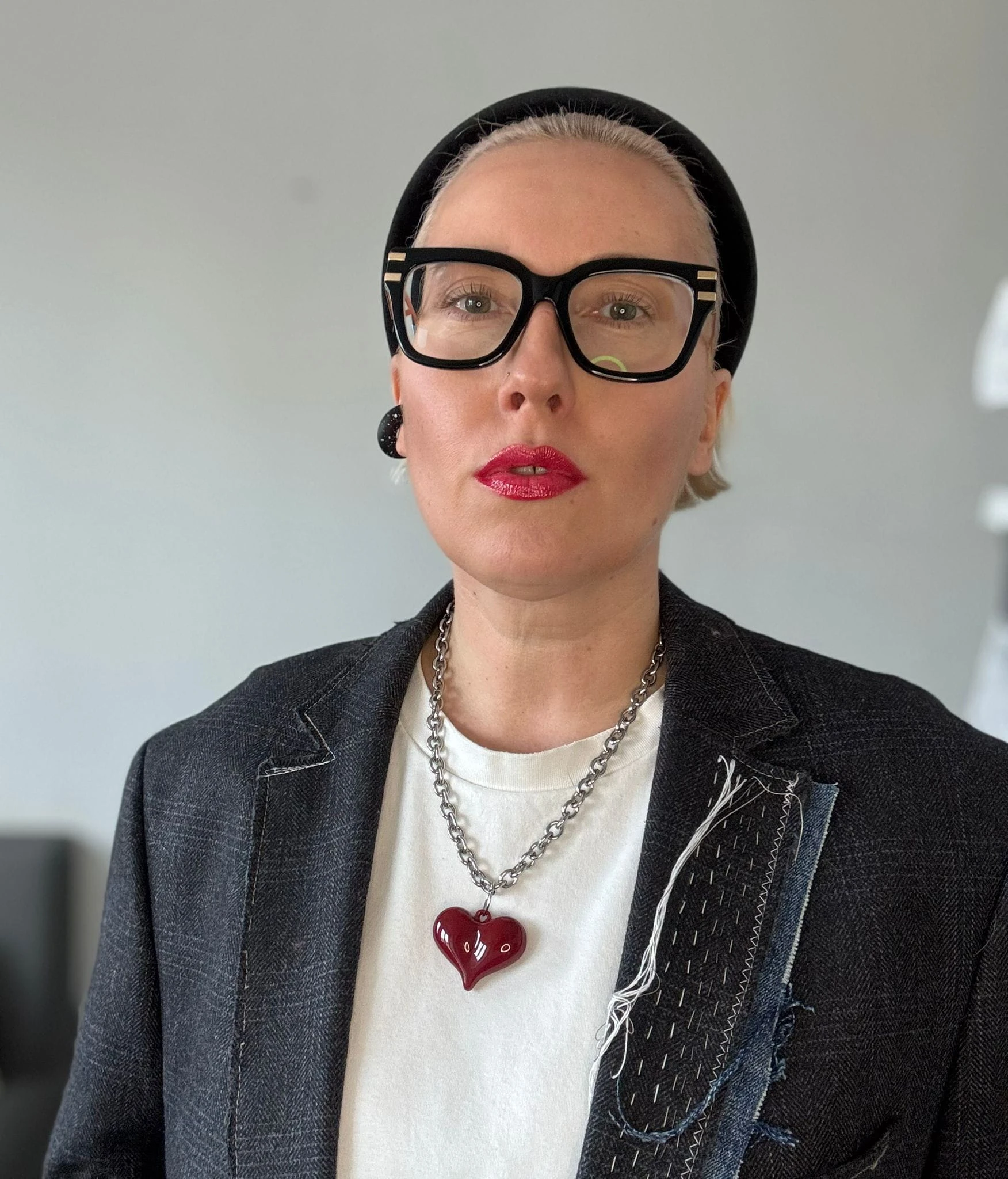 naszyjnik posrebrzany z czerwoną akrylowym sercem