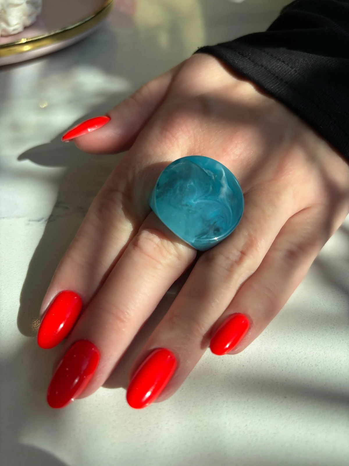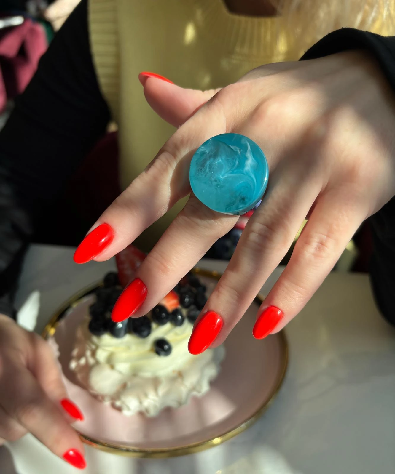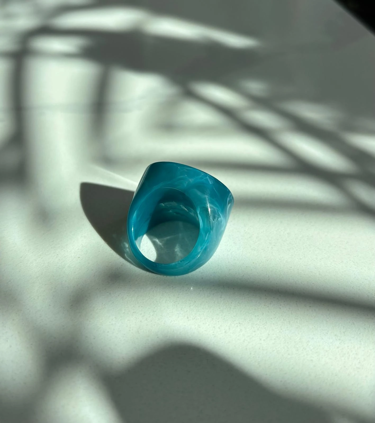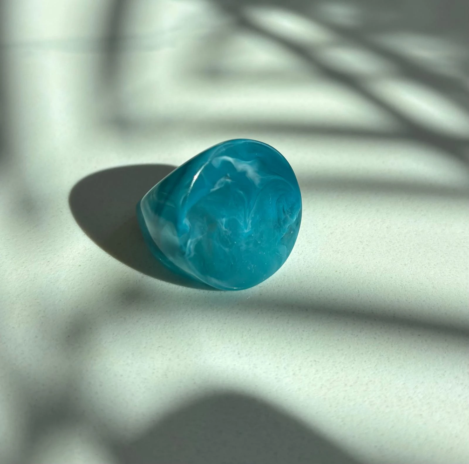 Pierścionek Twins w niebieskiej odsłonie. Wykonany z niebieskiego akrylu . To połączenie klasycznego projektu z nowoczesnym wykończeniem — dla wszystkich, którzy kochają oryginalność.