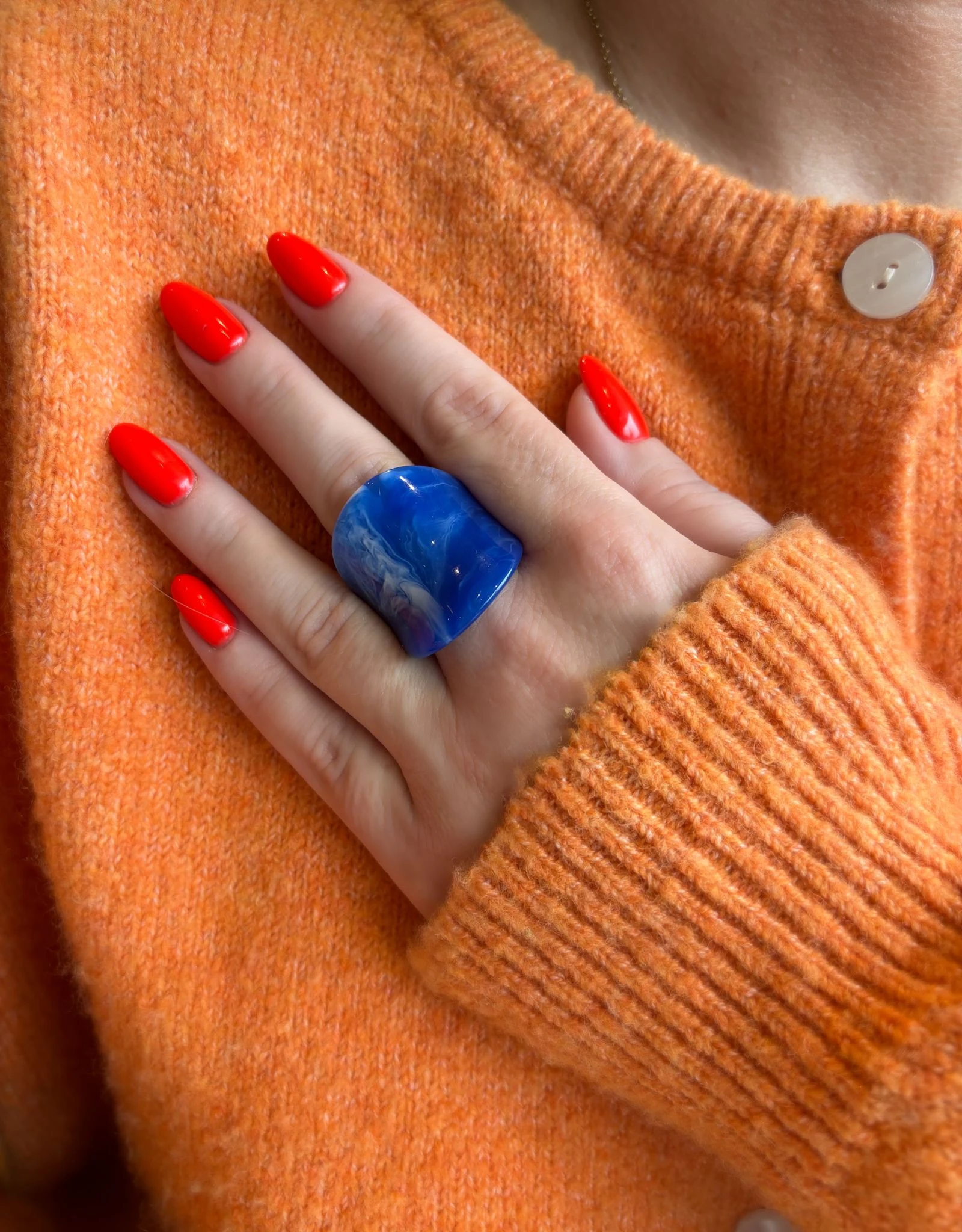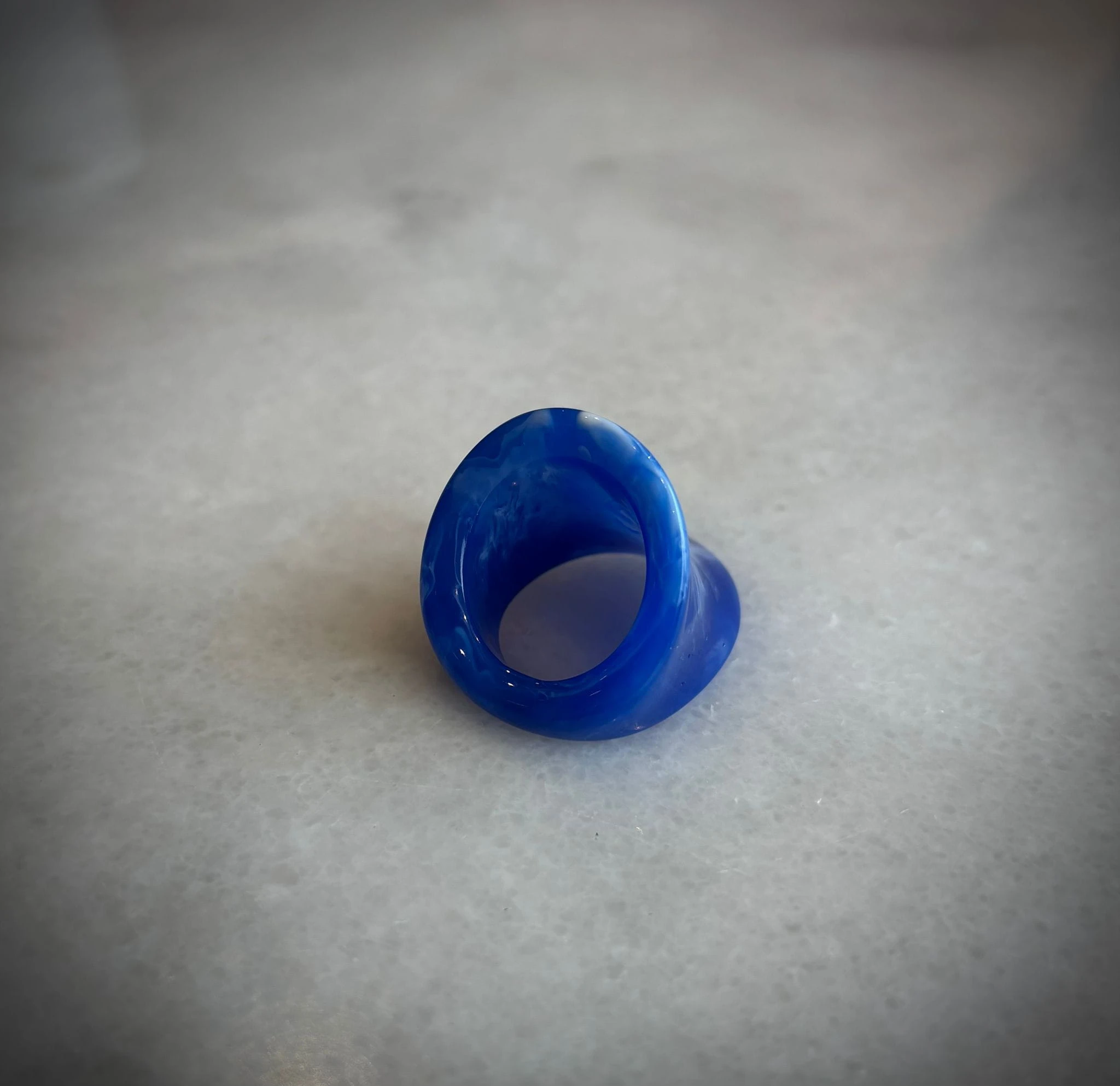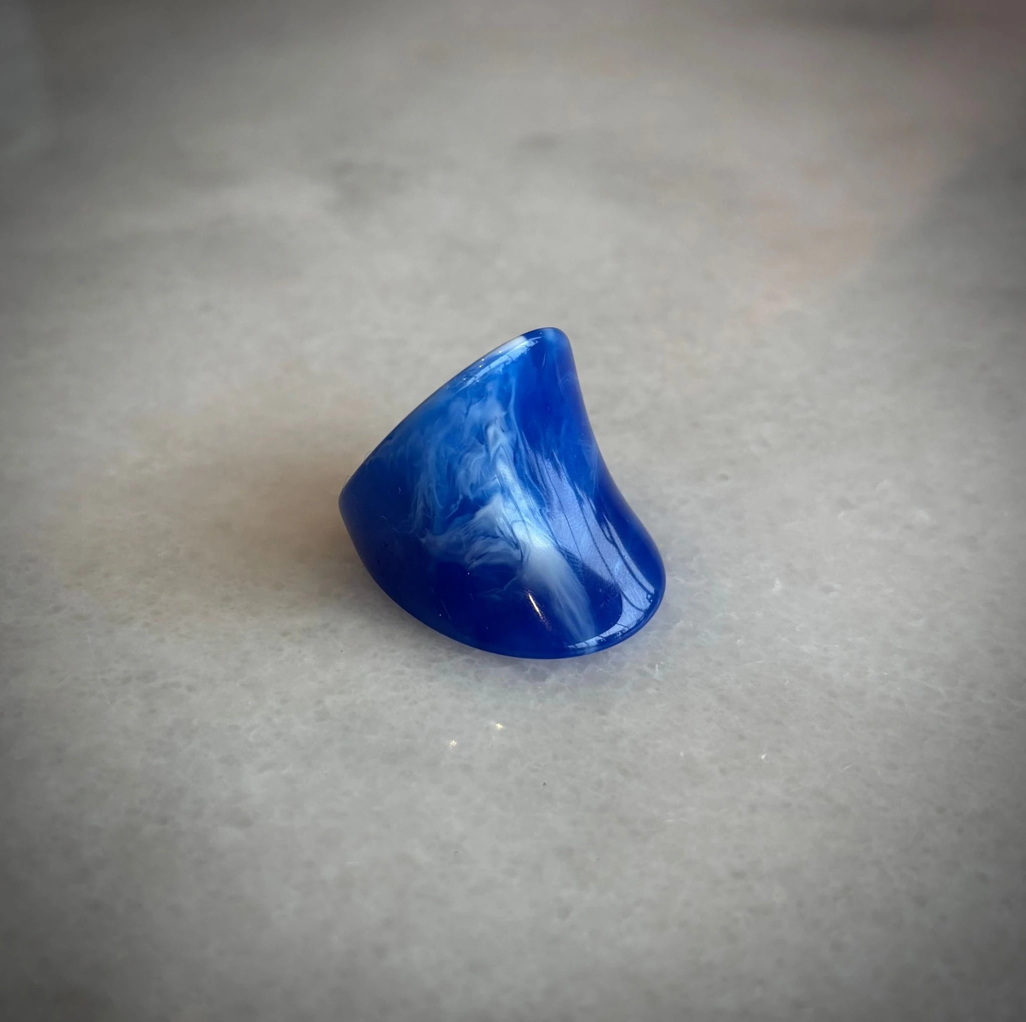 Pierścionek Twins w niebieskiej odsłonie. Wykonany z niebieskiego akrylu . To połączenie klasycznego projektu z nowoczesnym wykończeniem — dla wszystkich, którzy kochają oryginalność.