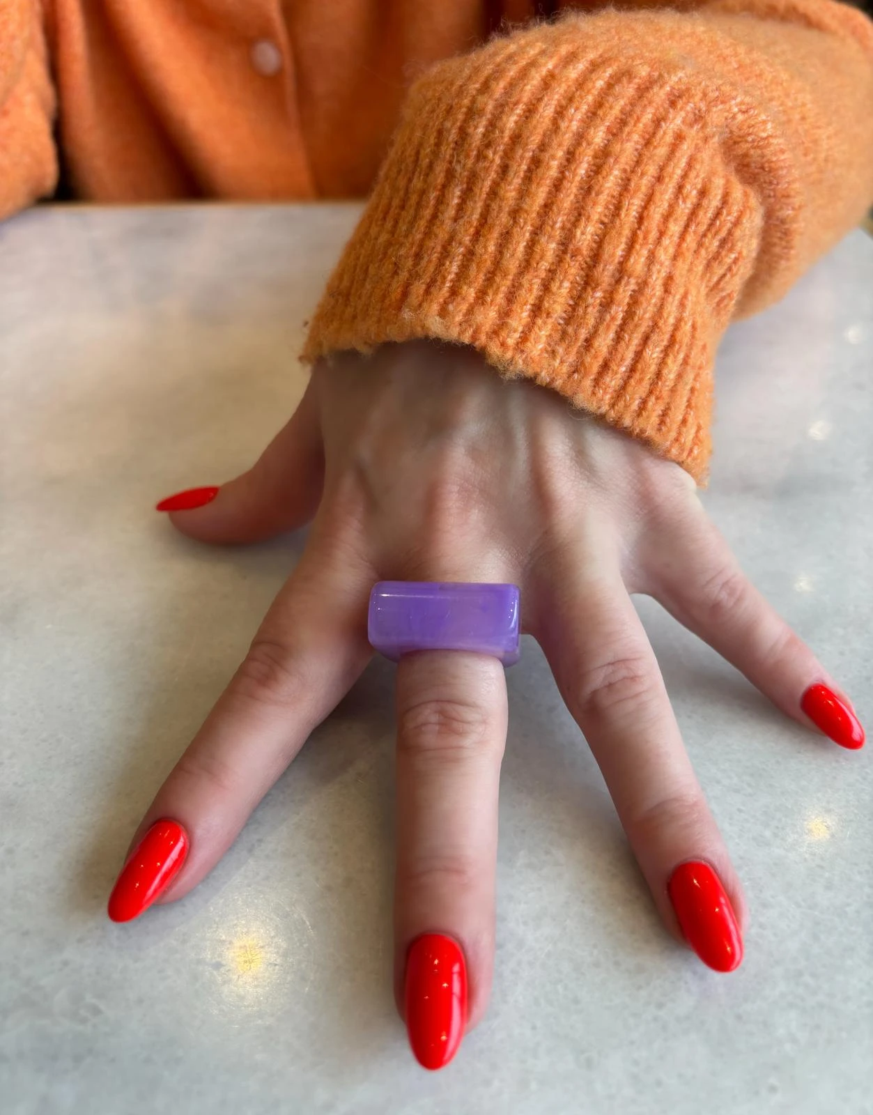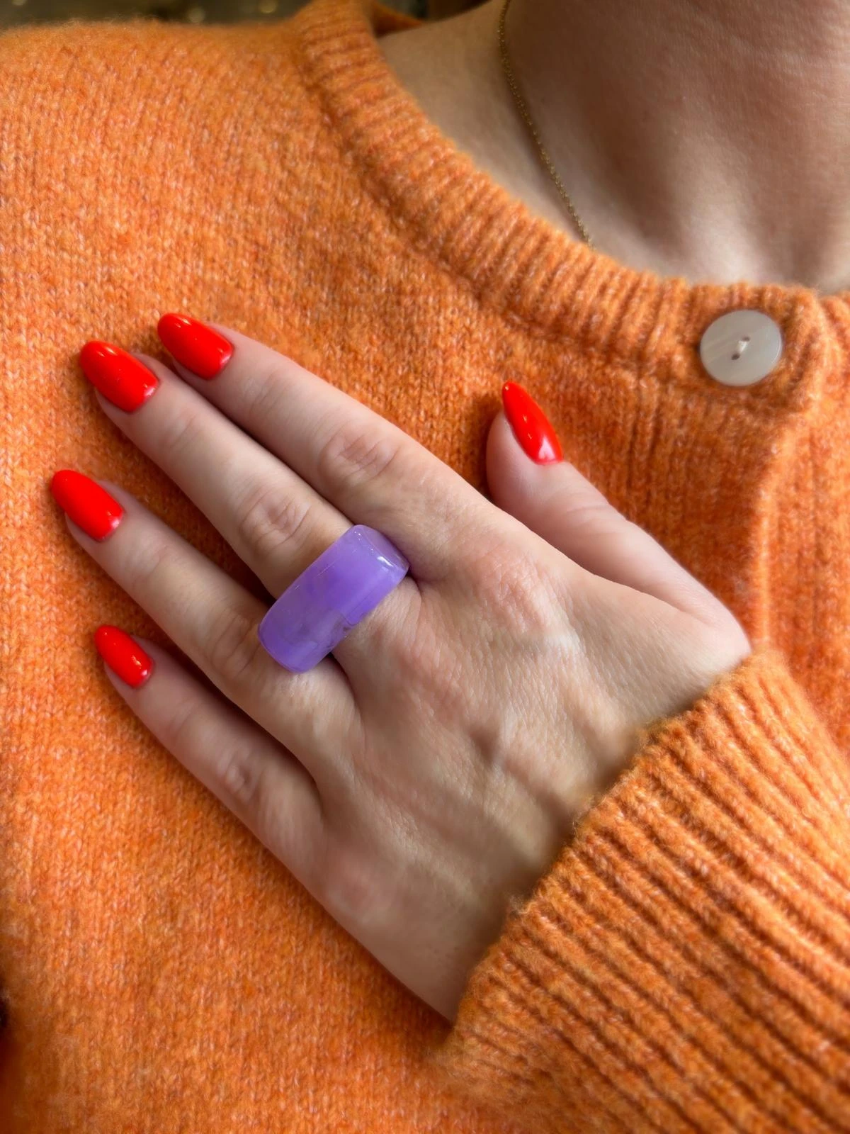 Pierścionek Twins w fioletowej odsłonie. Wykonany z fioletowego akrylu . To połączenie klasycznego projektu z nowoczesnym wykończeniem — dla wszystkich, którzy kochają oryginalność.