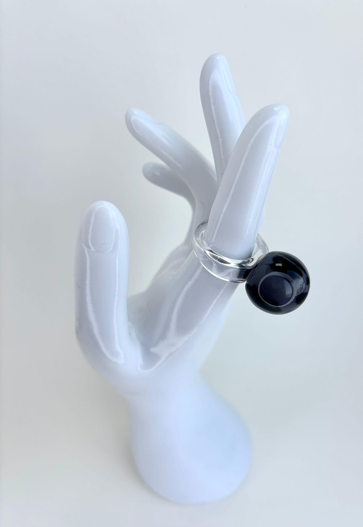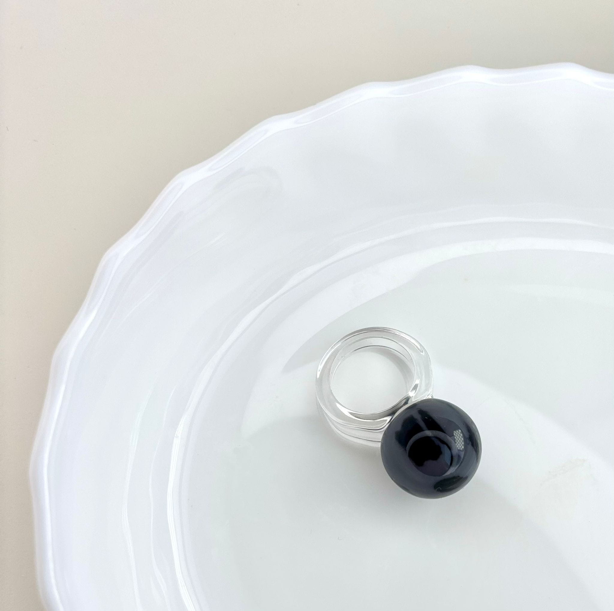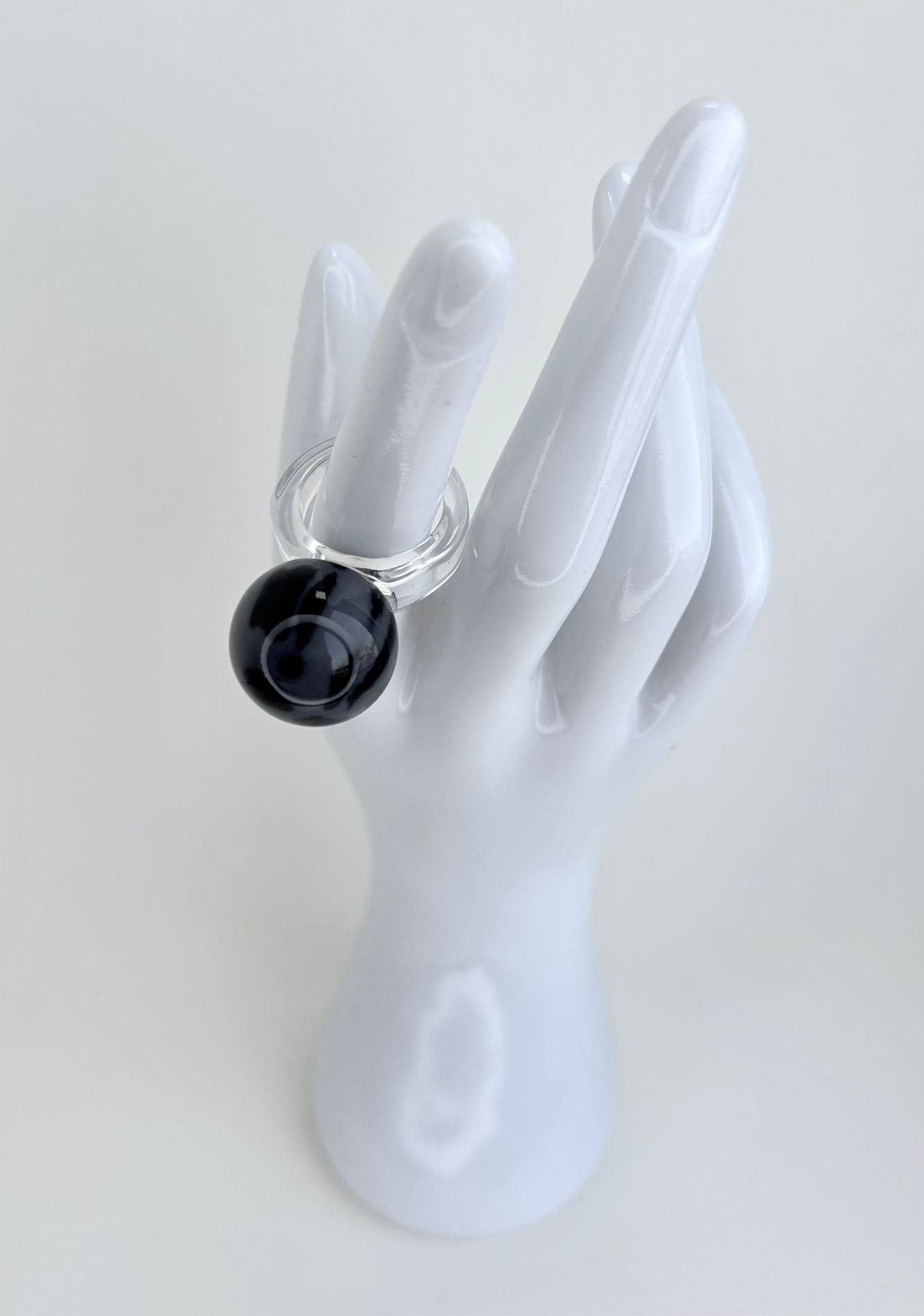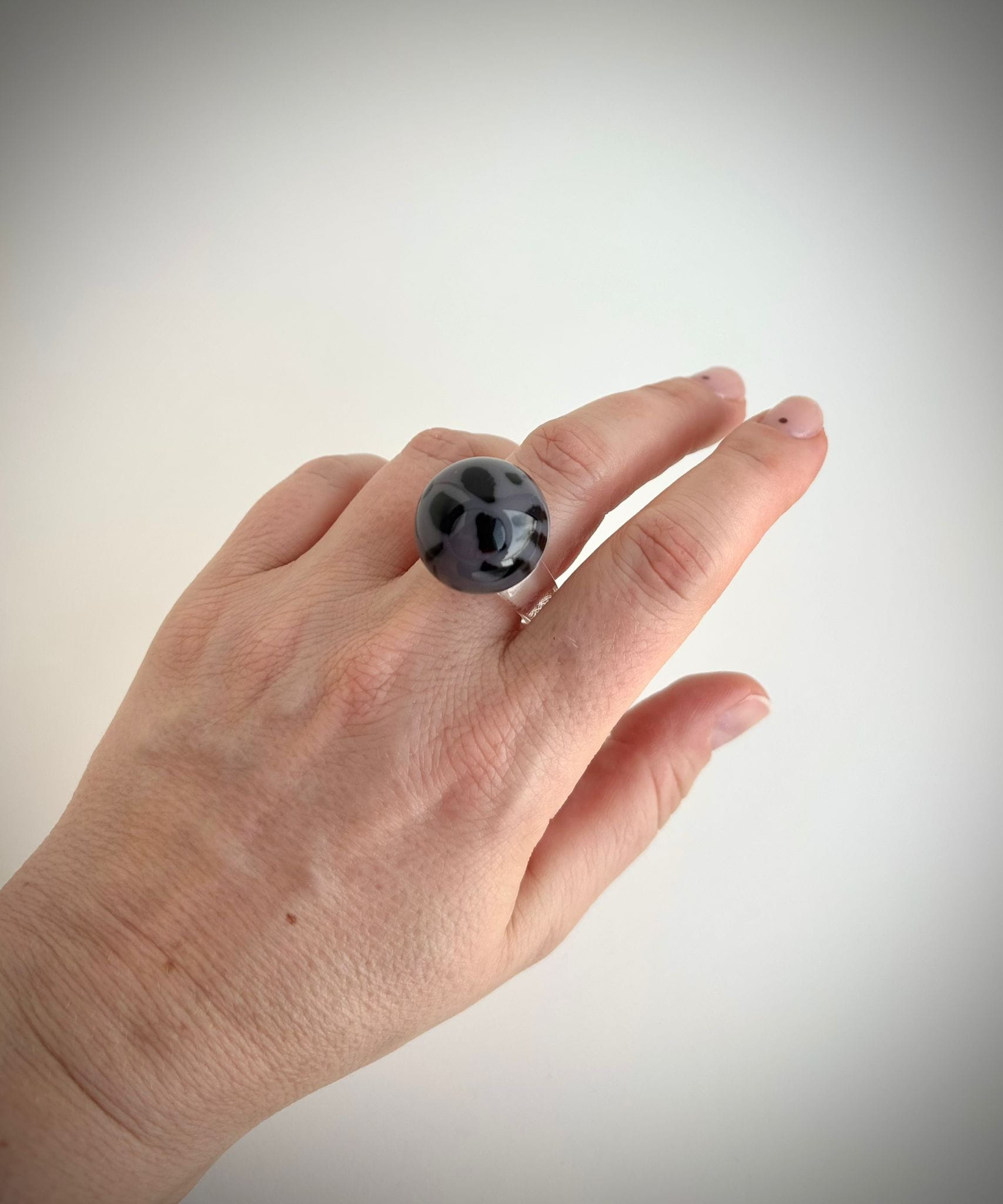 Pierścionek Twins w szaro czarnej odsłonie. Wykonany z akrylu. To połączenie klasycznego projektu z nowoczesnym wykończeniem — dla wszystkich, którzy kochają oryginalność.