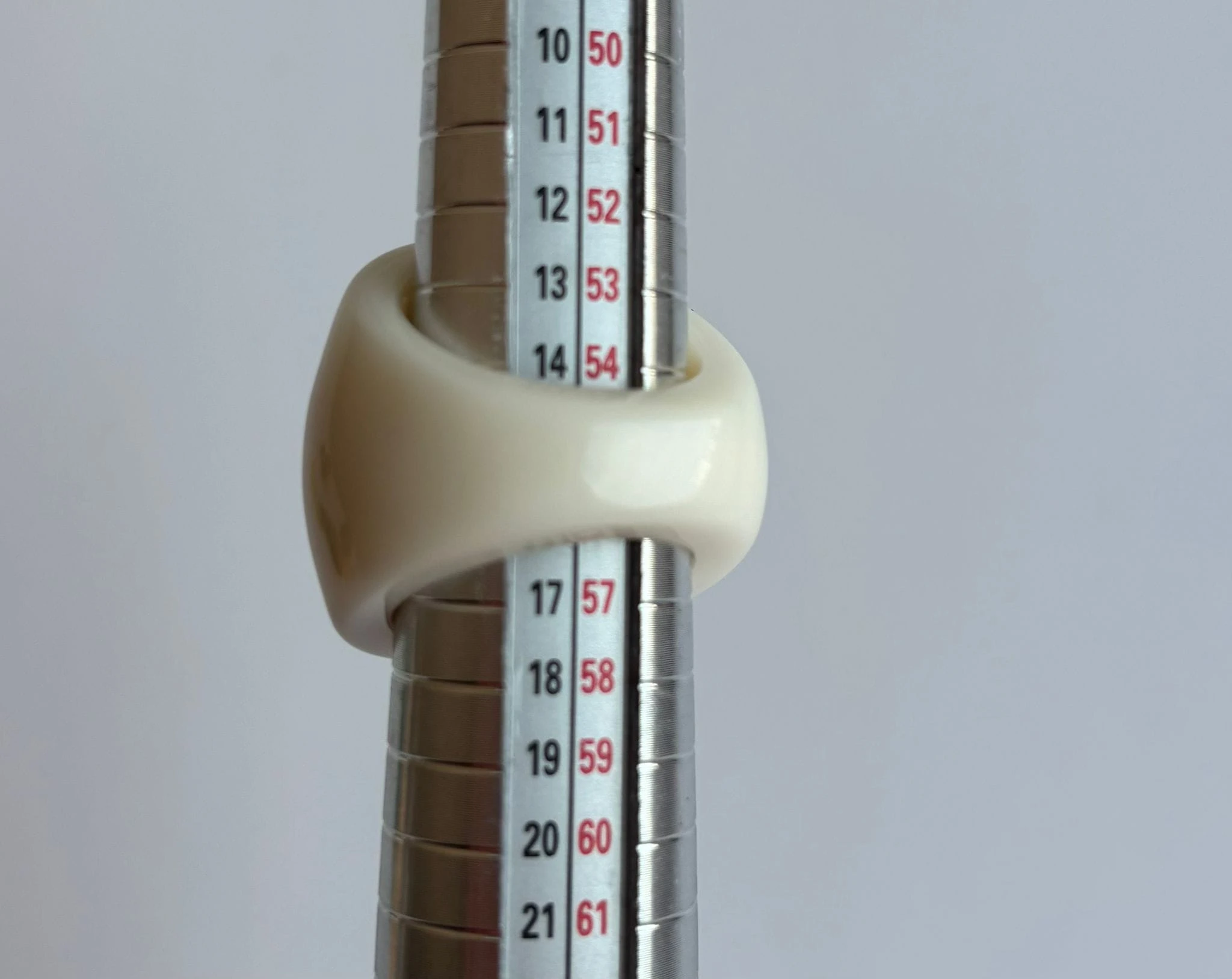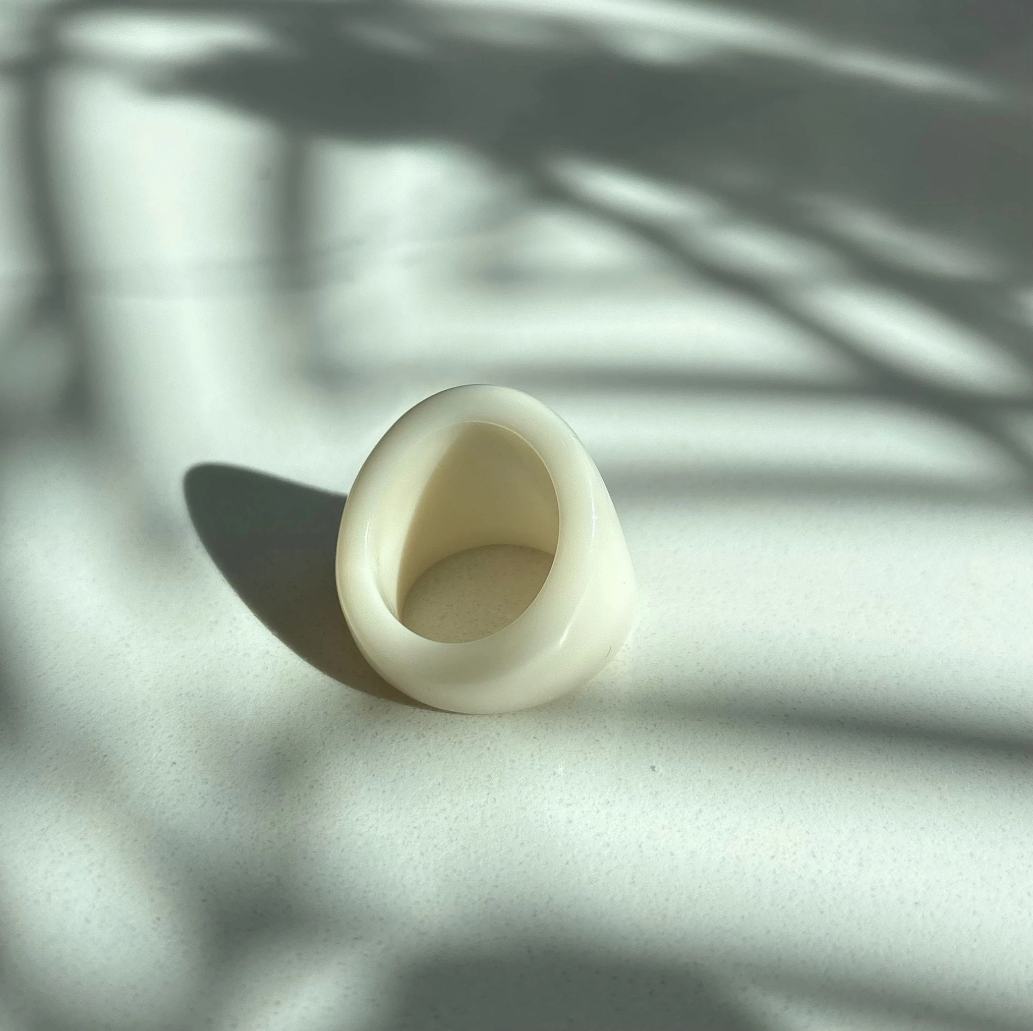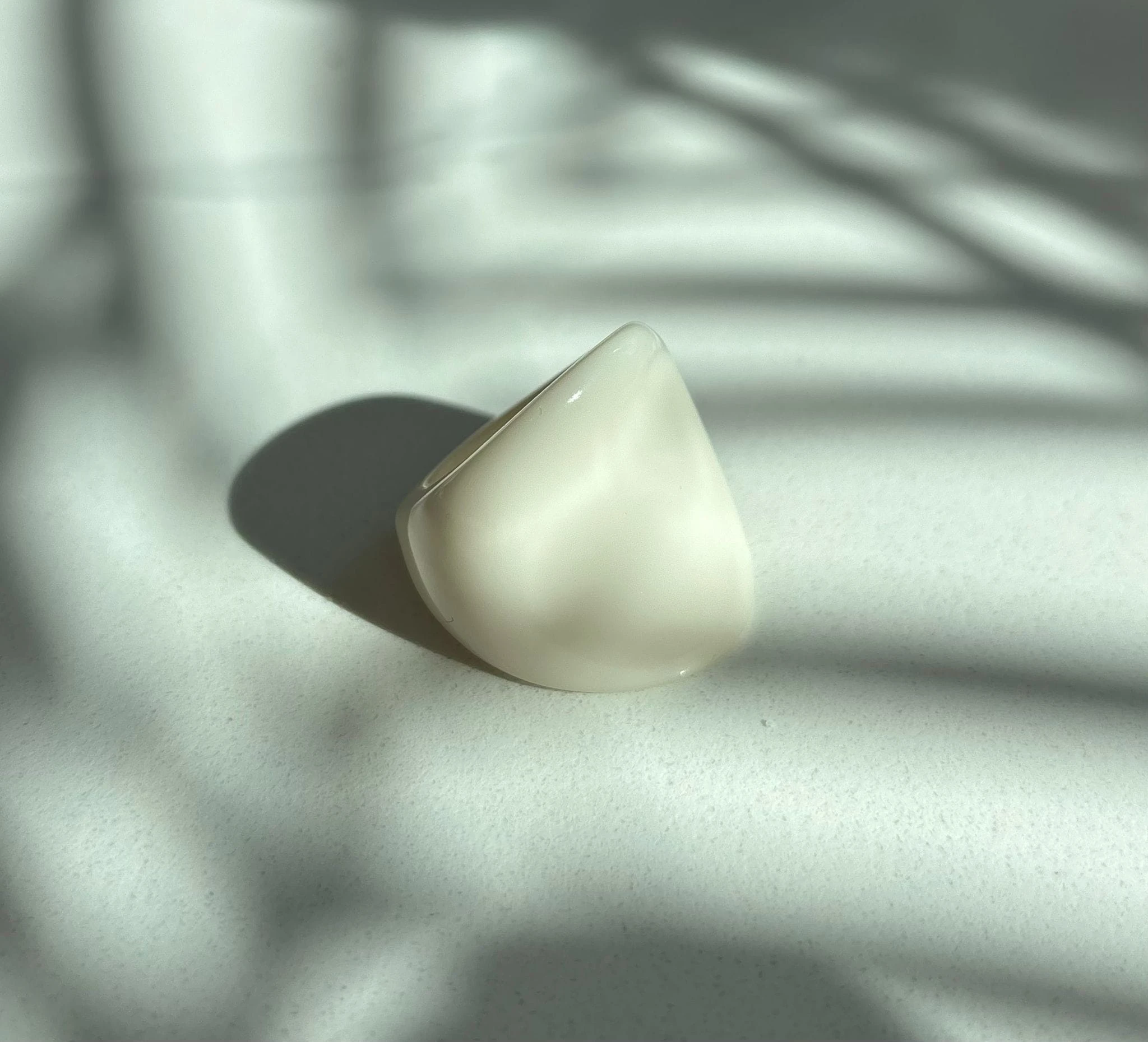 Pierścionek Twins w białej odsłonie. Wykonany z białego akrylu . To połączenie klasycznego projektu z nowoczesnym wykończeniem — dla wszystkich, którzy kochają oryginalność.