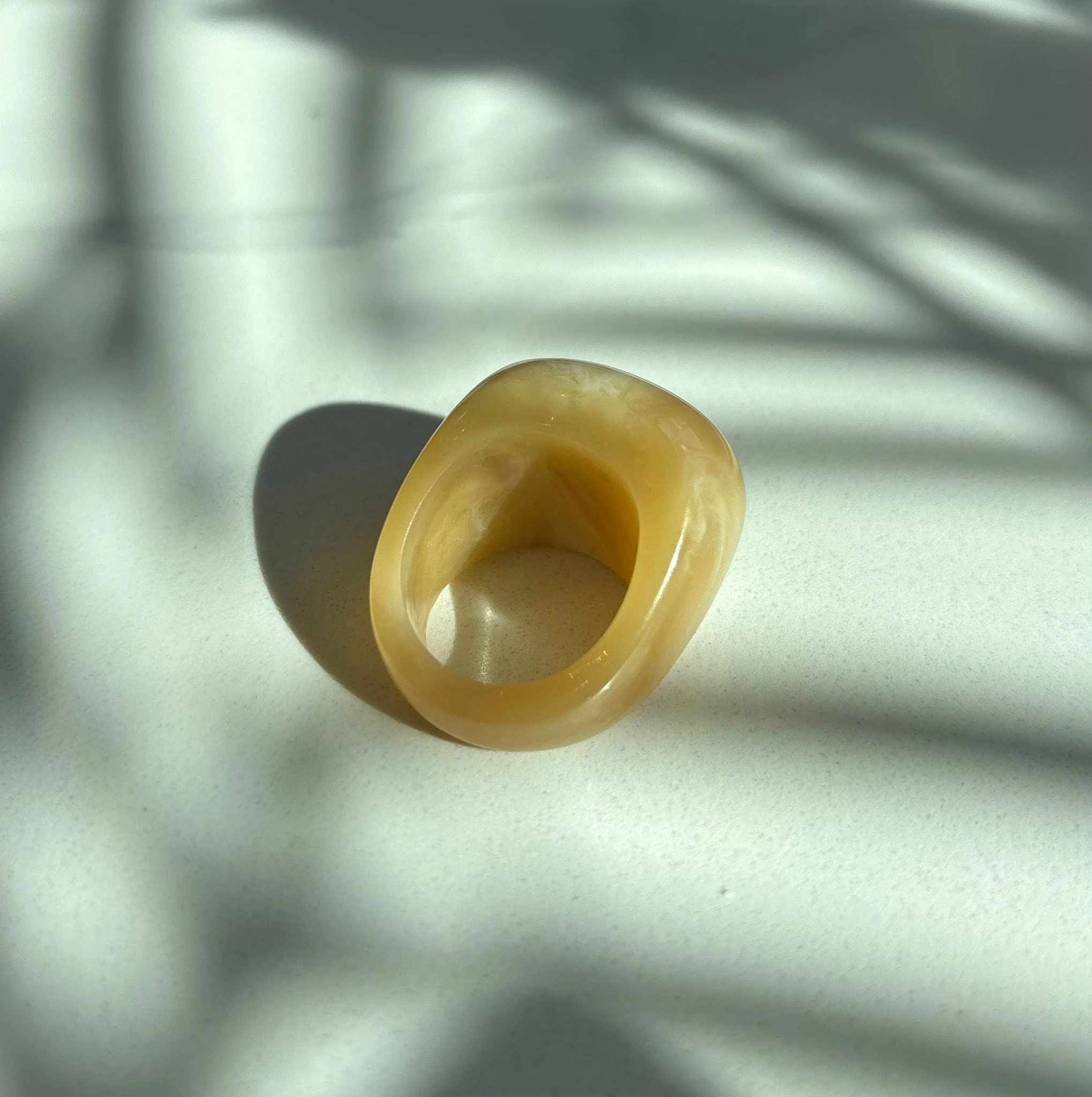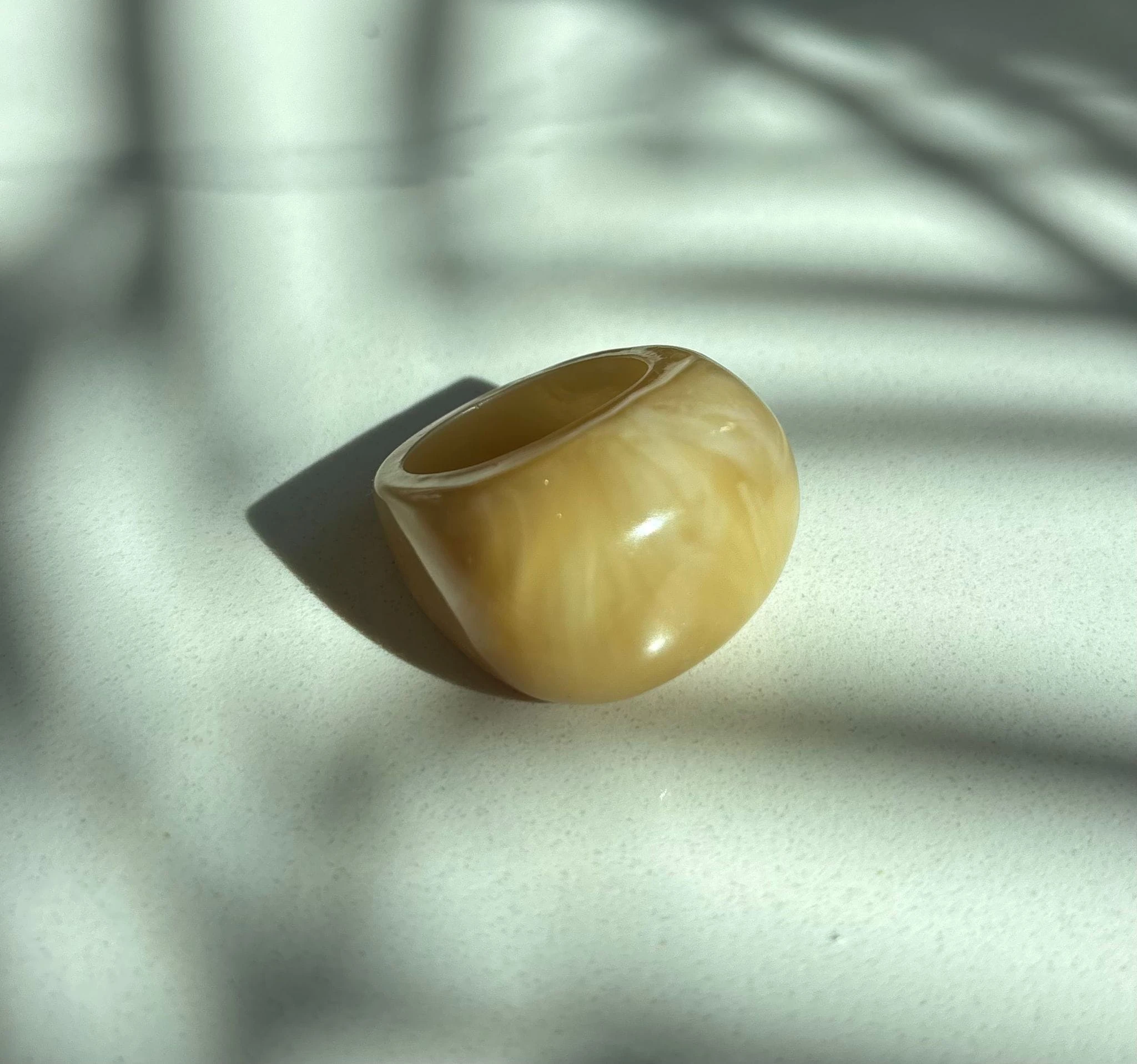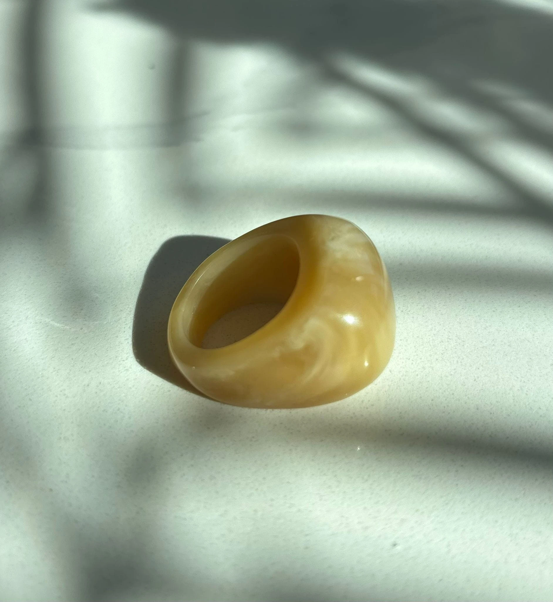 Pierścionek Twins w jasno brązowej odsłonie. Wykonany z brązowego akrylu . To połączenie klasycznego projektu z nowoczesnym wykończeniem — dla wszystkich, którzy kochają oryginalność.