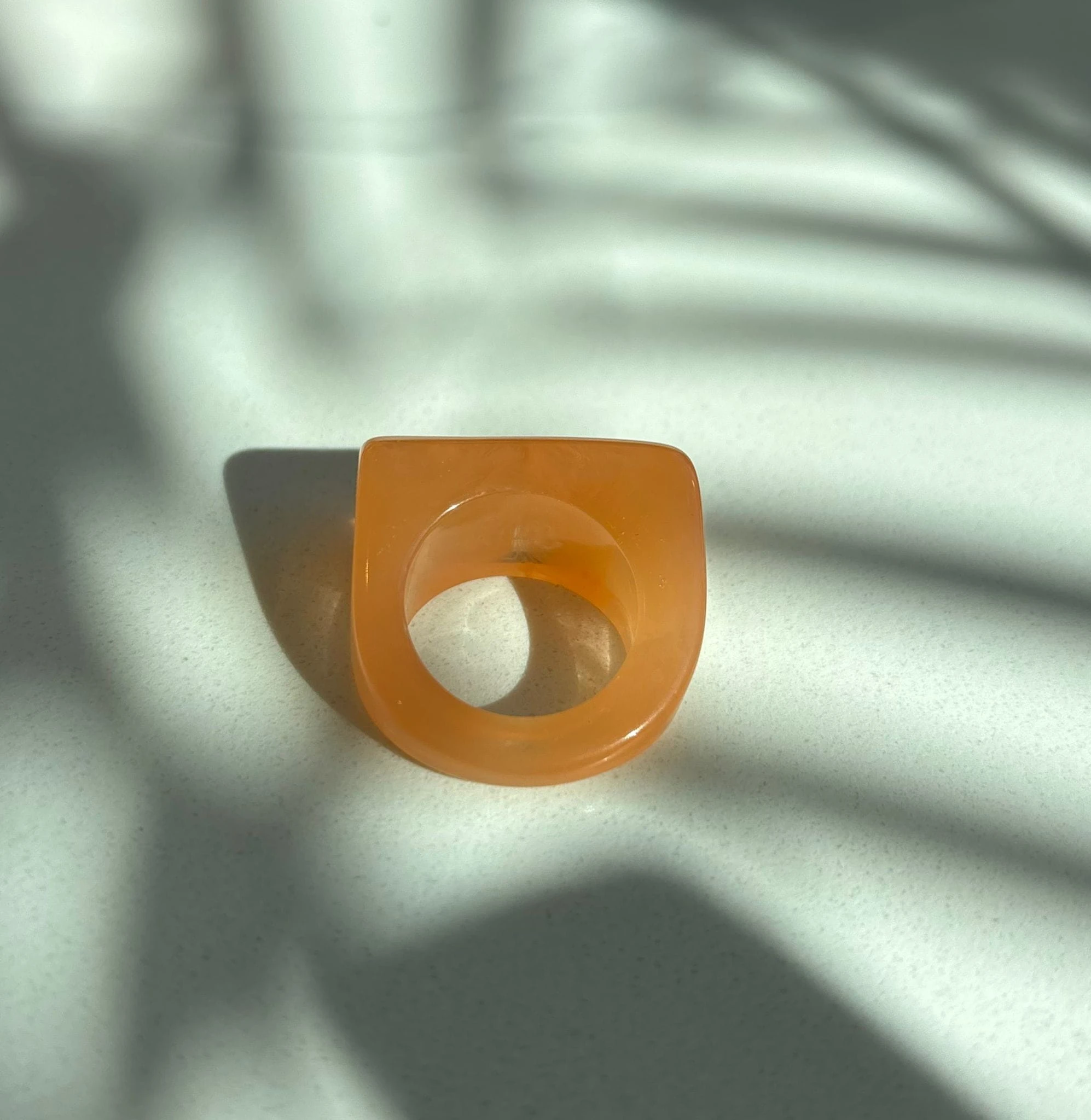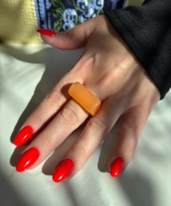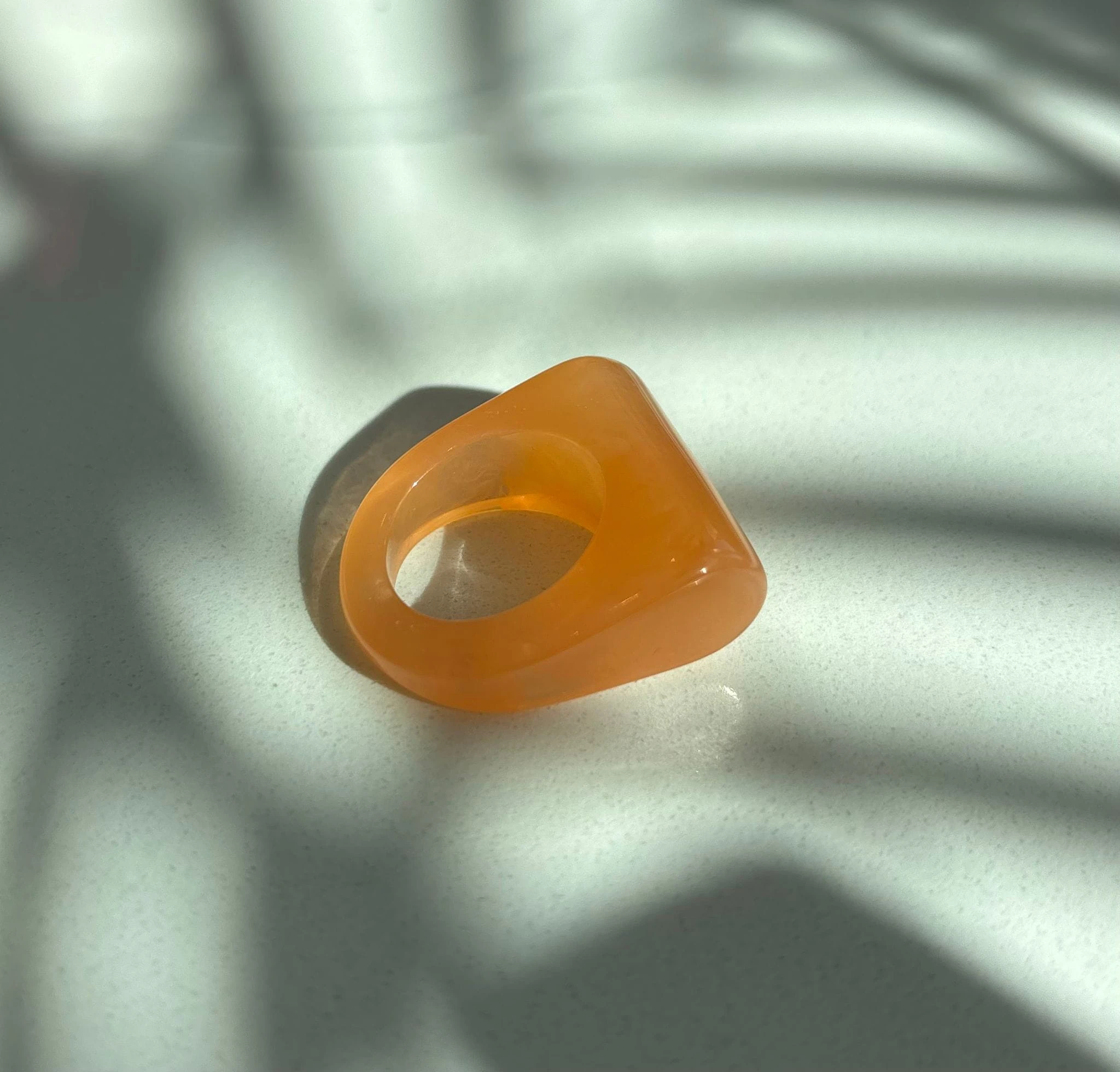 Pierścionek Twins w pomarańczowej odsłonie. Wykonany z pomarańczowego akrylu . To połączenie klasycznego projektu z nowoczesnym wykończeniem — dla wszystkich, którzy kochają oryginalność.