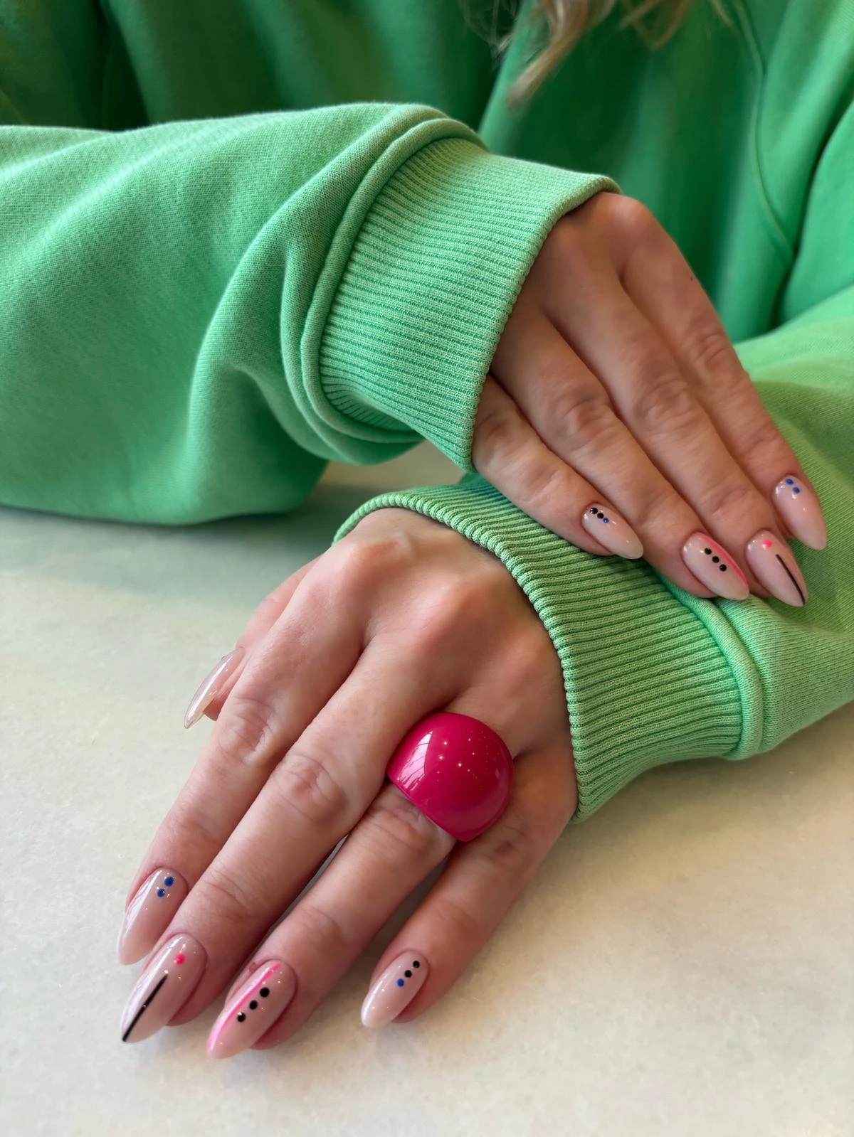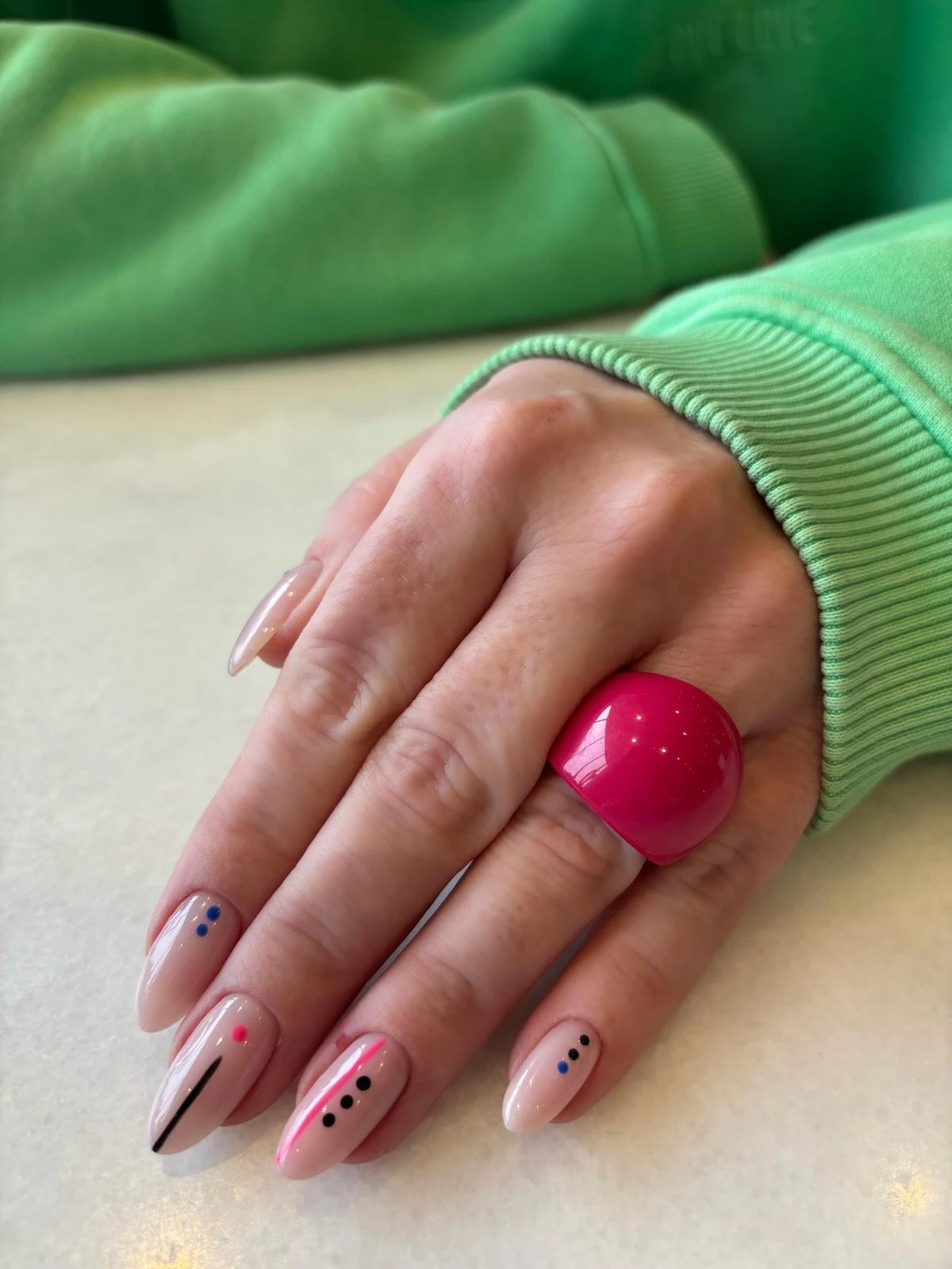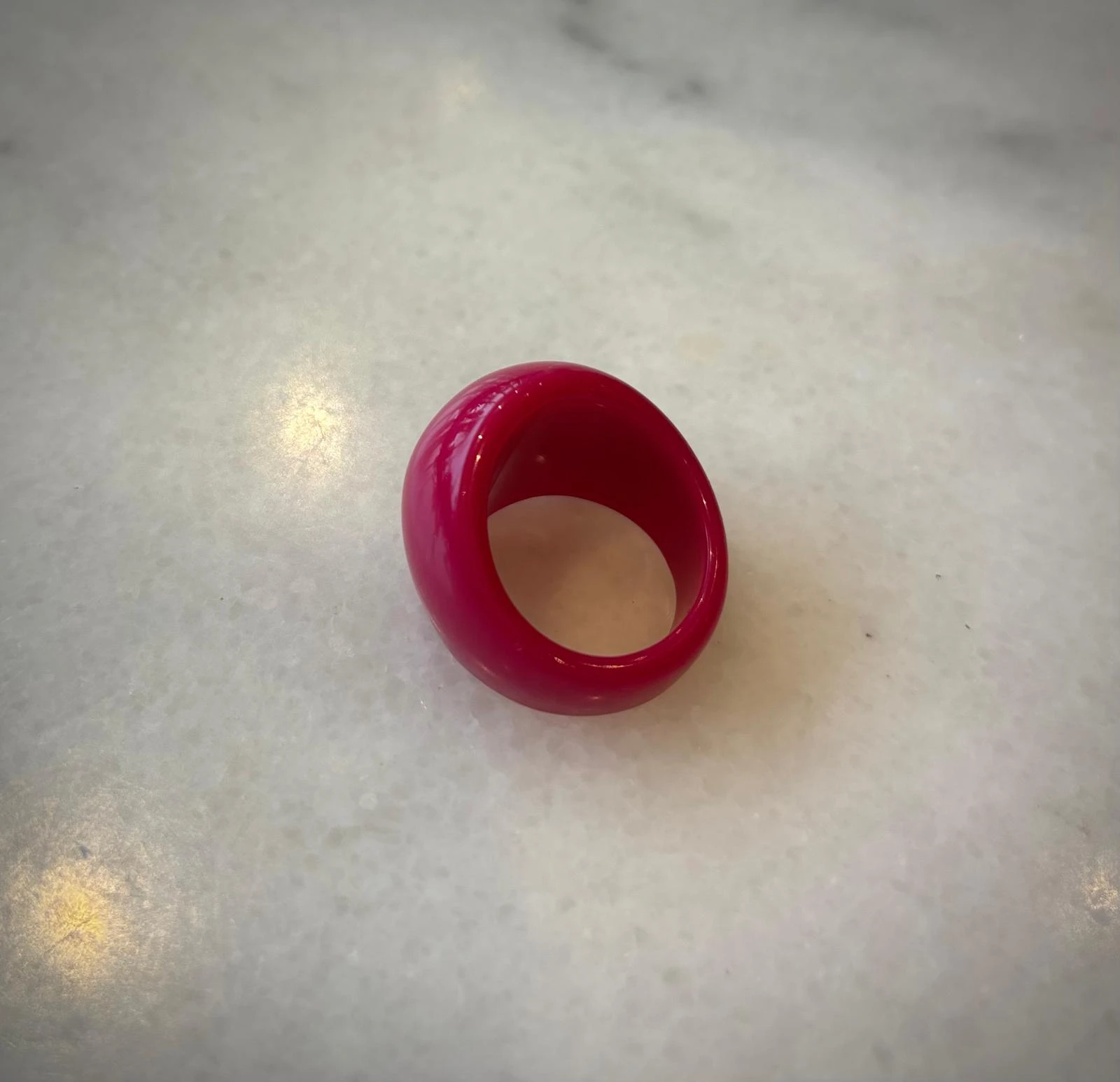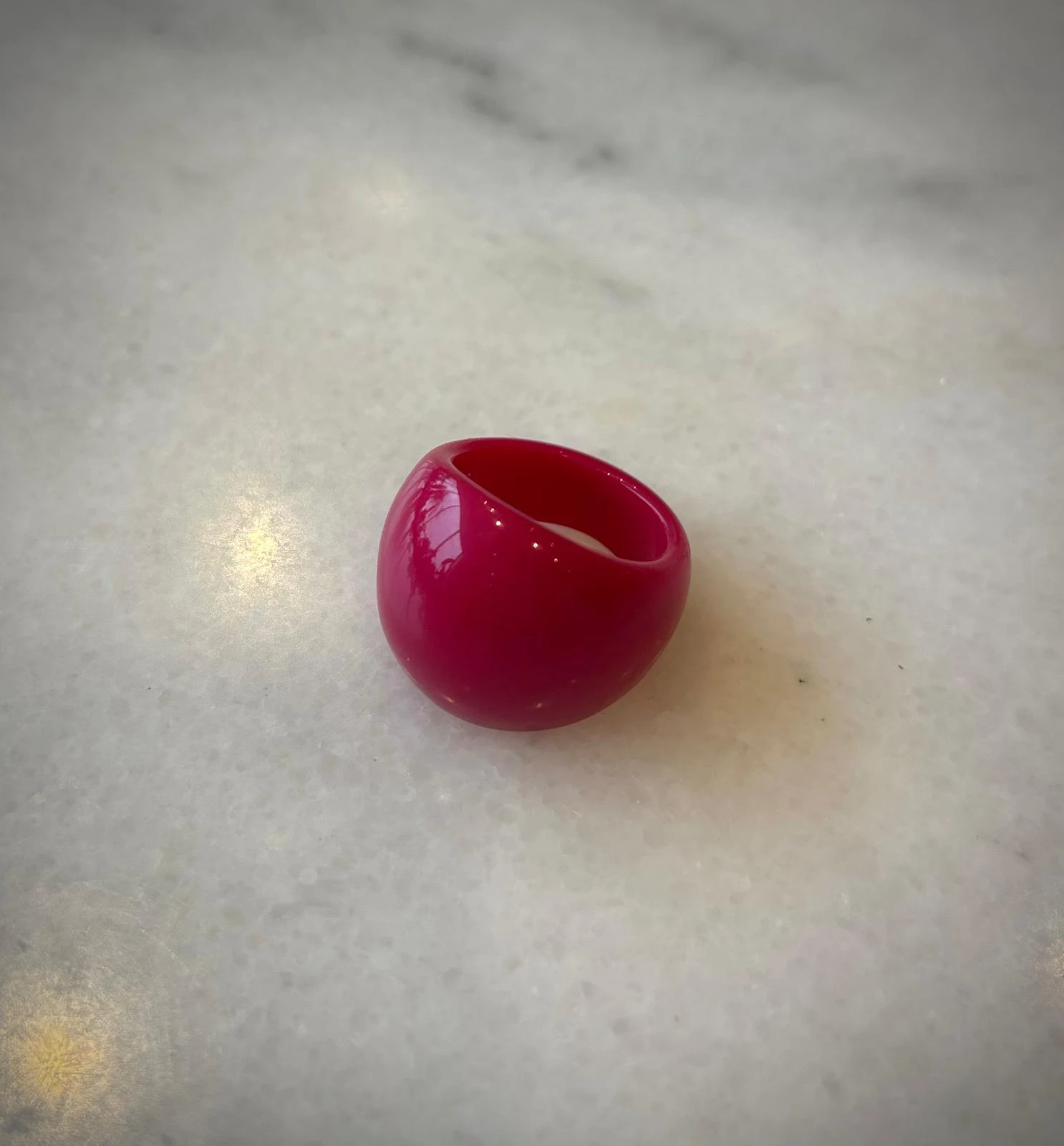Pierścionek Twins w różowej odsłonie. Wykonany z różowego akrylu . To połączenie klasycznego projektu z nowoczesnym wykończeniem — dla wszystkich, którzy kochają oryginalność.