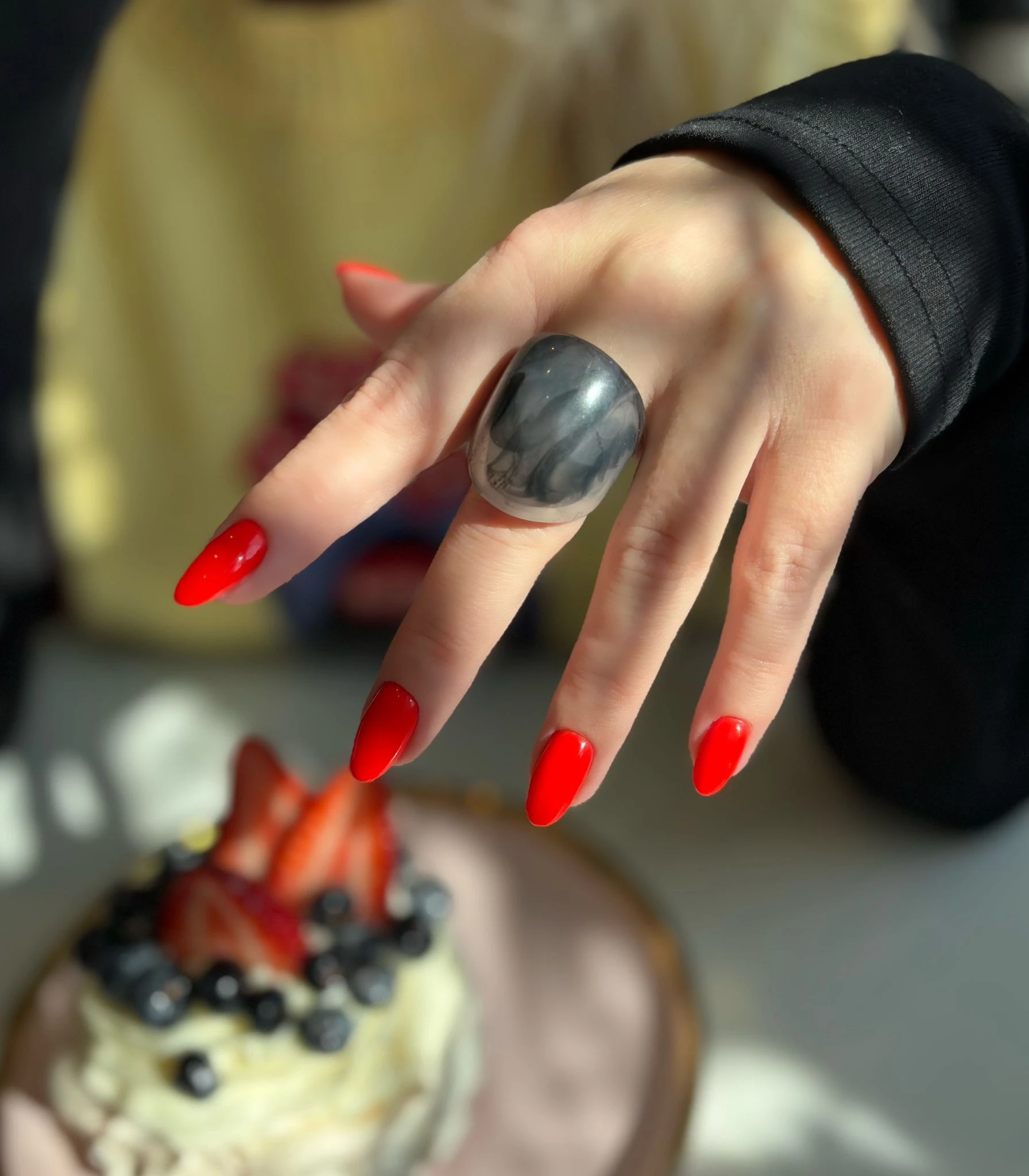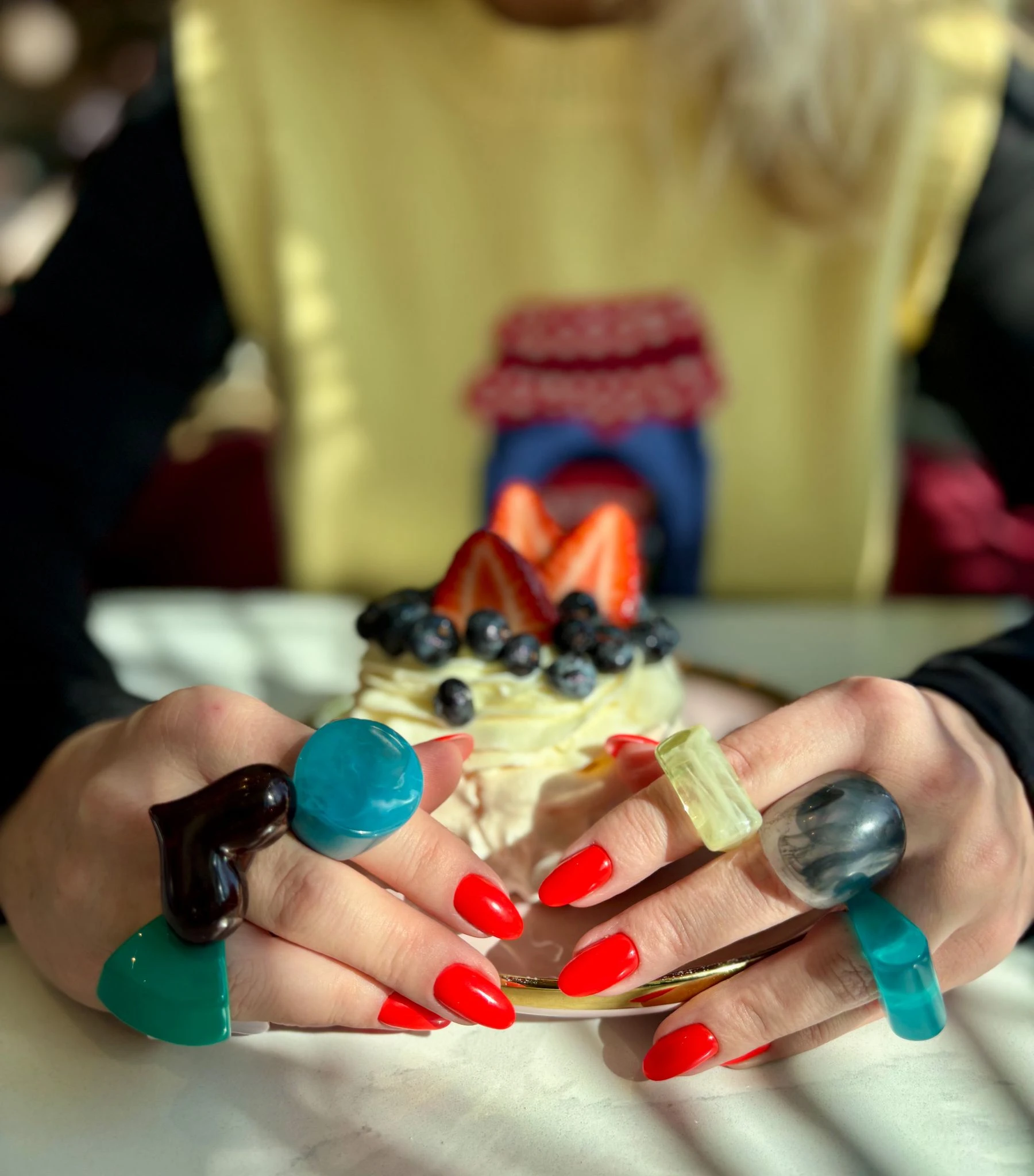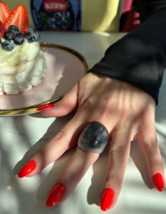 Pierścionek Twins w czarnej odsłonie. Wykonany z czarno szarego akrylu . To połączenie klasycznego projektu z nowoczesnym wykończeniem — dla wszystkich, którzy kochają oryginalność.