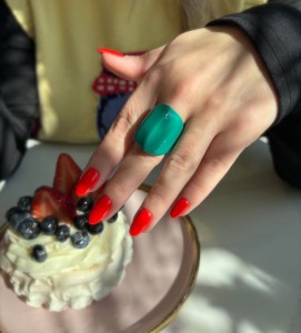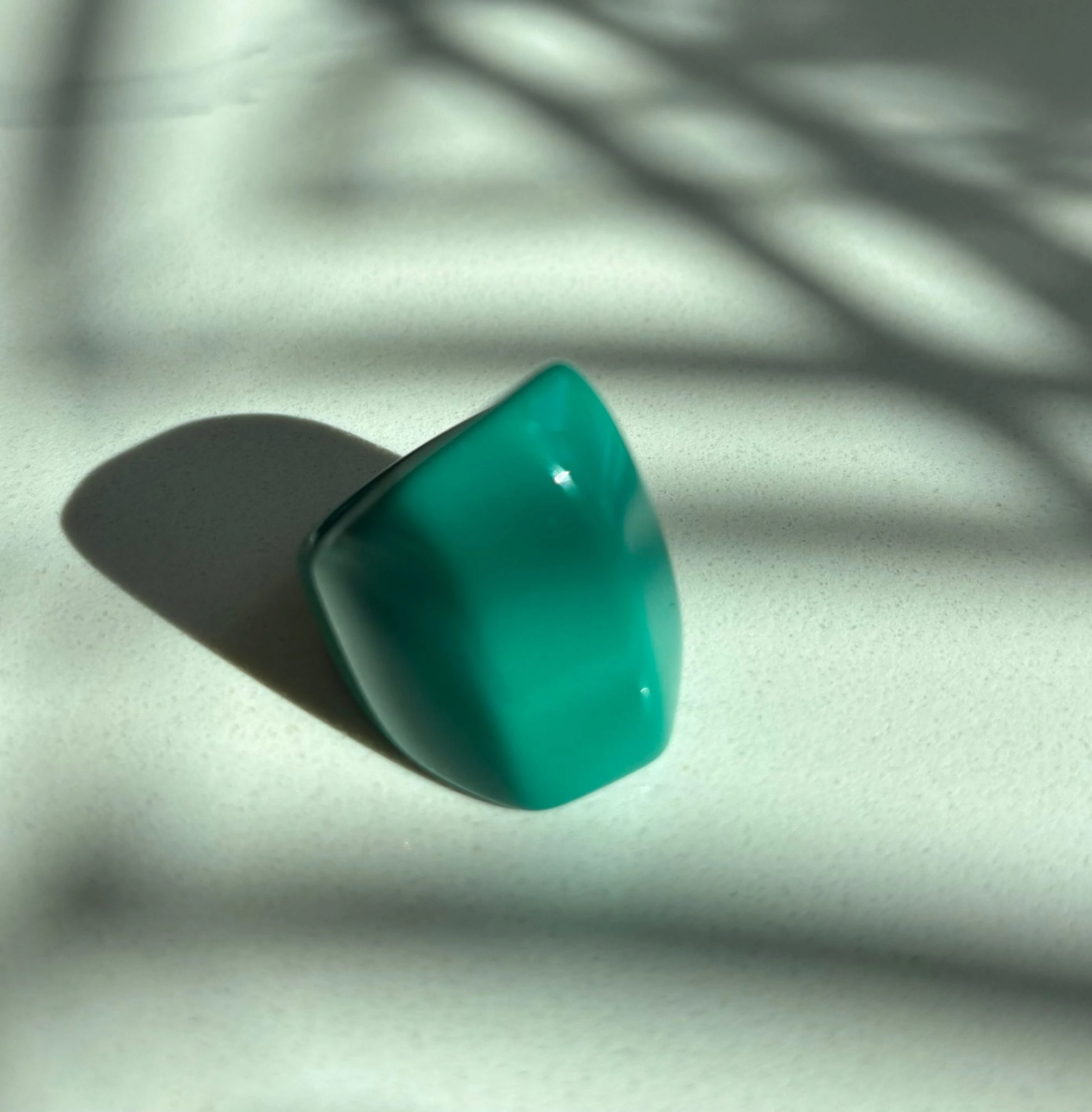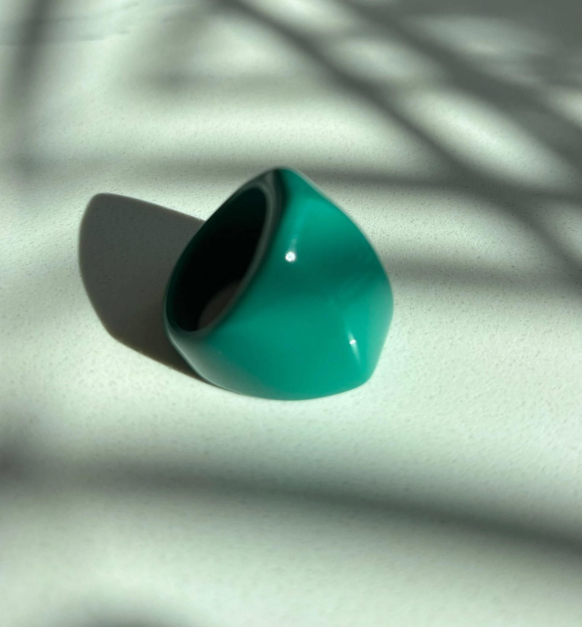 Pierścionek Twins w zielonej odsłonie. Wykonany z zielonego akrylu . To połączenie klasycznego projektu z nowoczesnym wykończeniem — dla wszystkich, którzy kochają oryginalność.