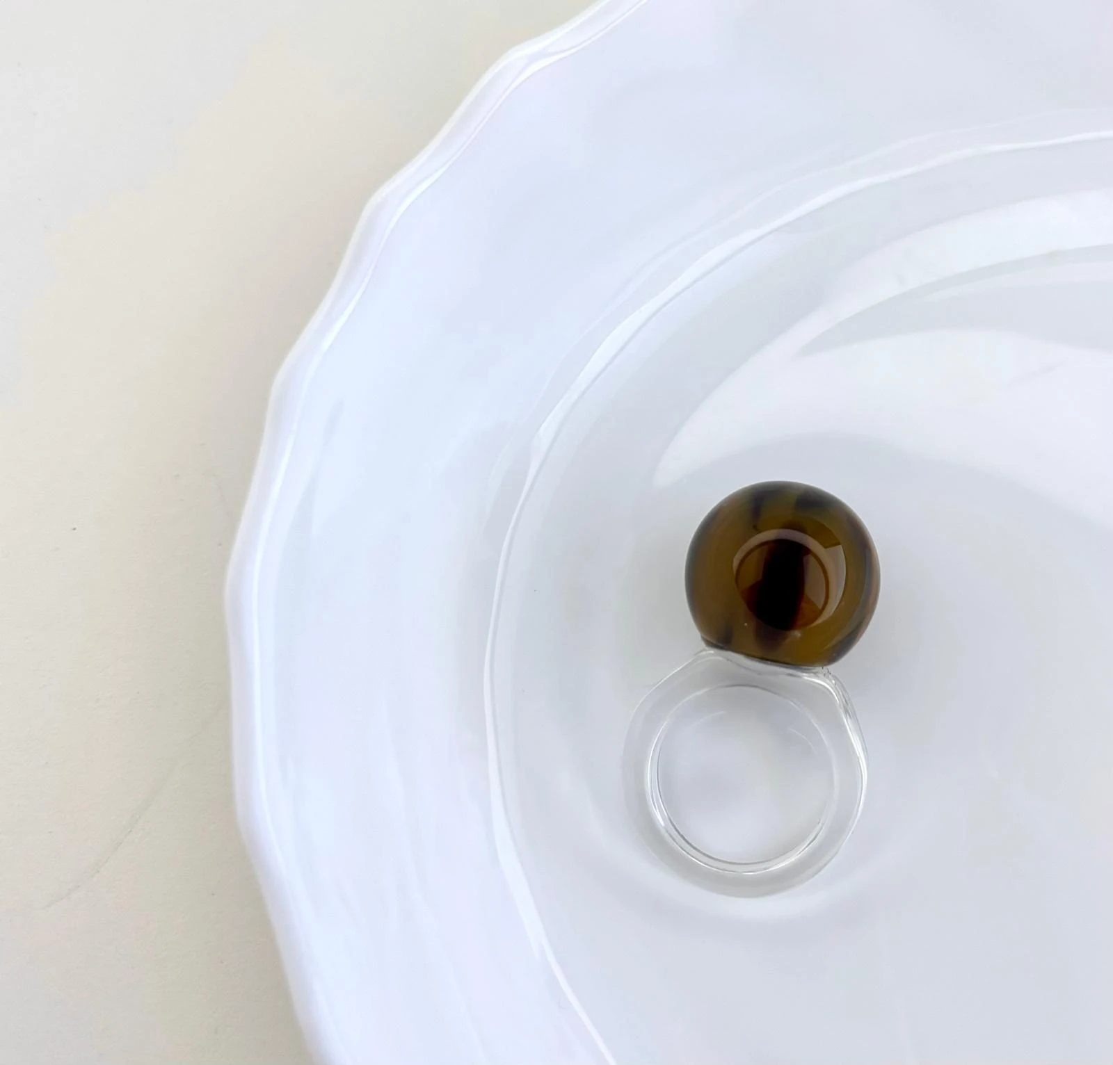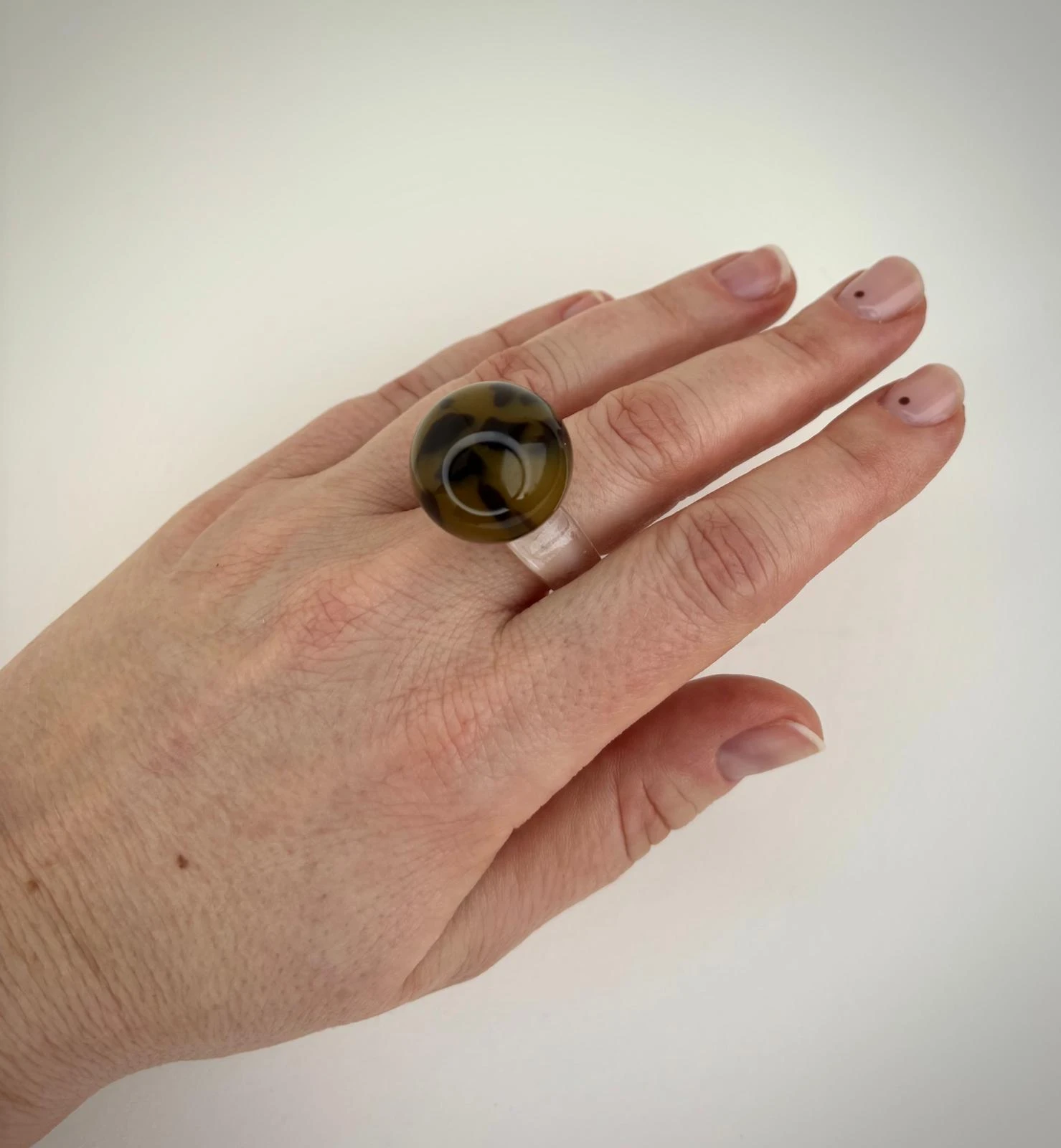 Pierścionek Twins w brązowo czarnej odsłonie. Wykonany z akrylu. To połączenie klasycznego projektu z nowoczesnym wykończeniem — dla wszystkich, którzy kochają oryginalność.